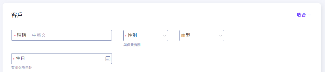 - 「 暱稱 」:中英文、「 性別 」:與保費有關、「 生日 」: 有關保險年齡※ 皆可隨時「 修改 」、「 刪除 」