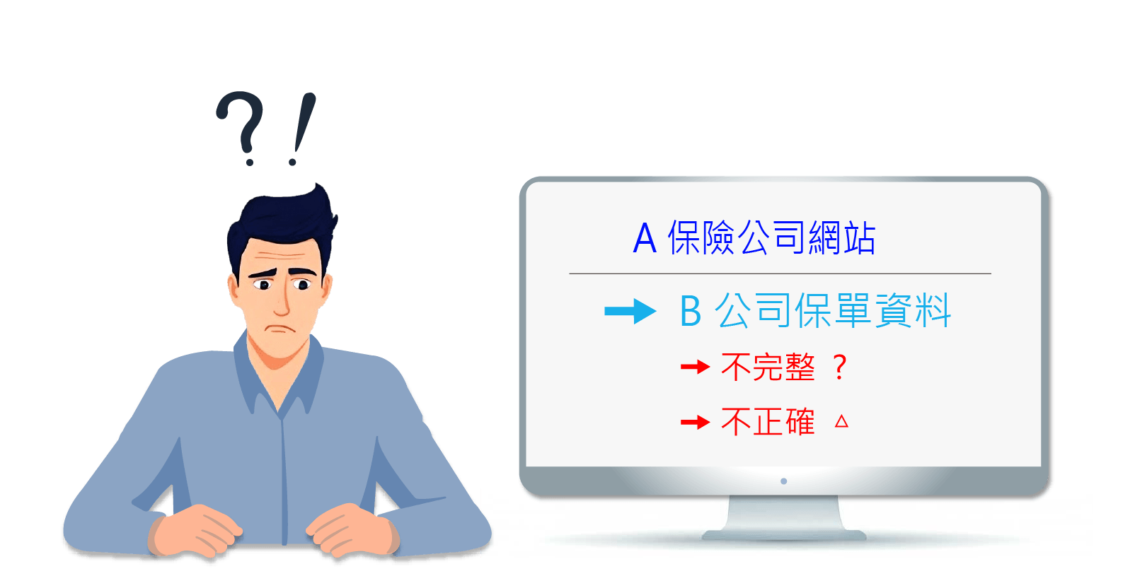 因此為了迴避「 同業競爭法規 」與「 消費者糾紛 」,保險公司是不能提供客戶〔 在自家網站查詢:他家公司保單資料 〕的服務。